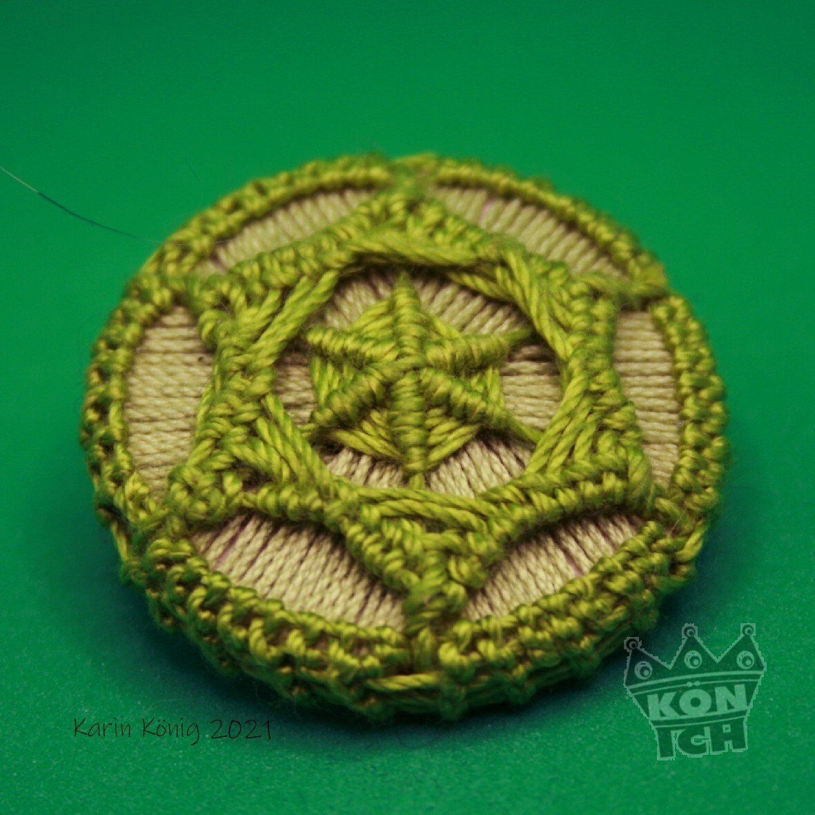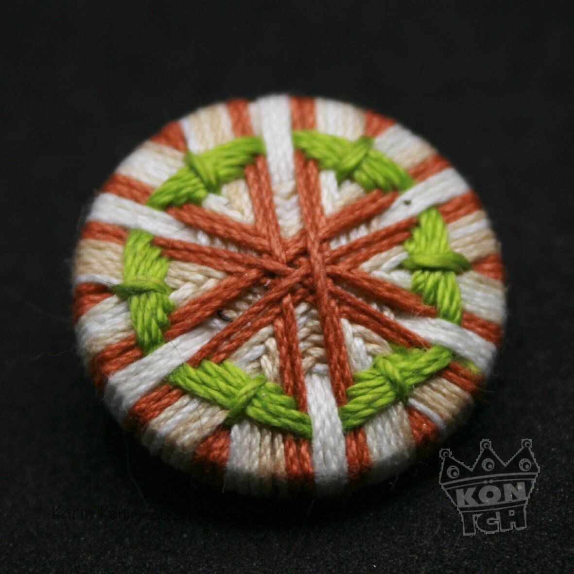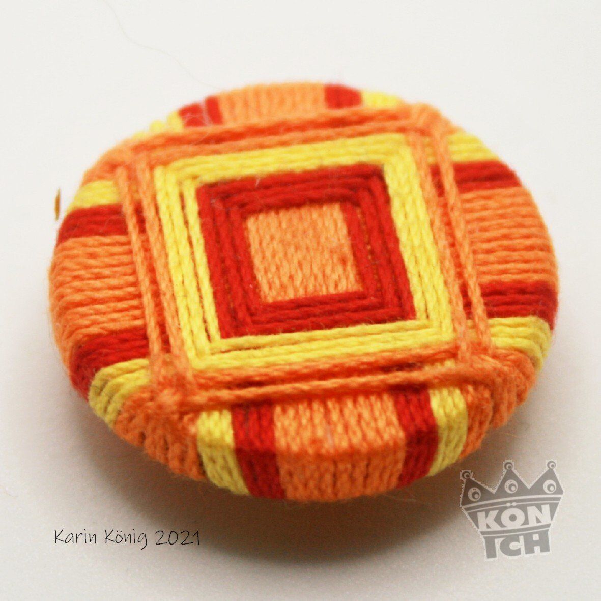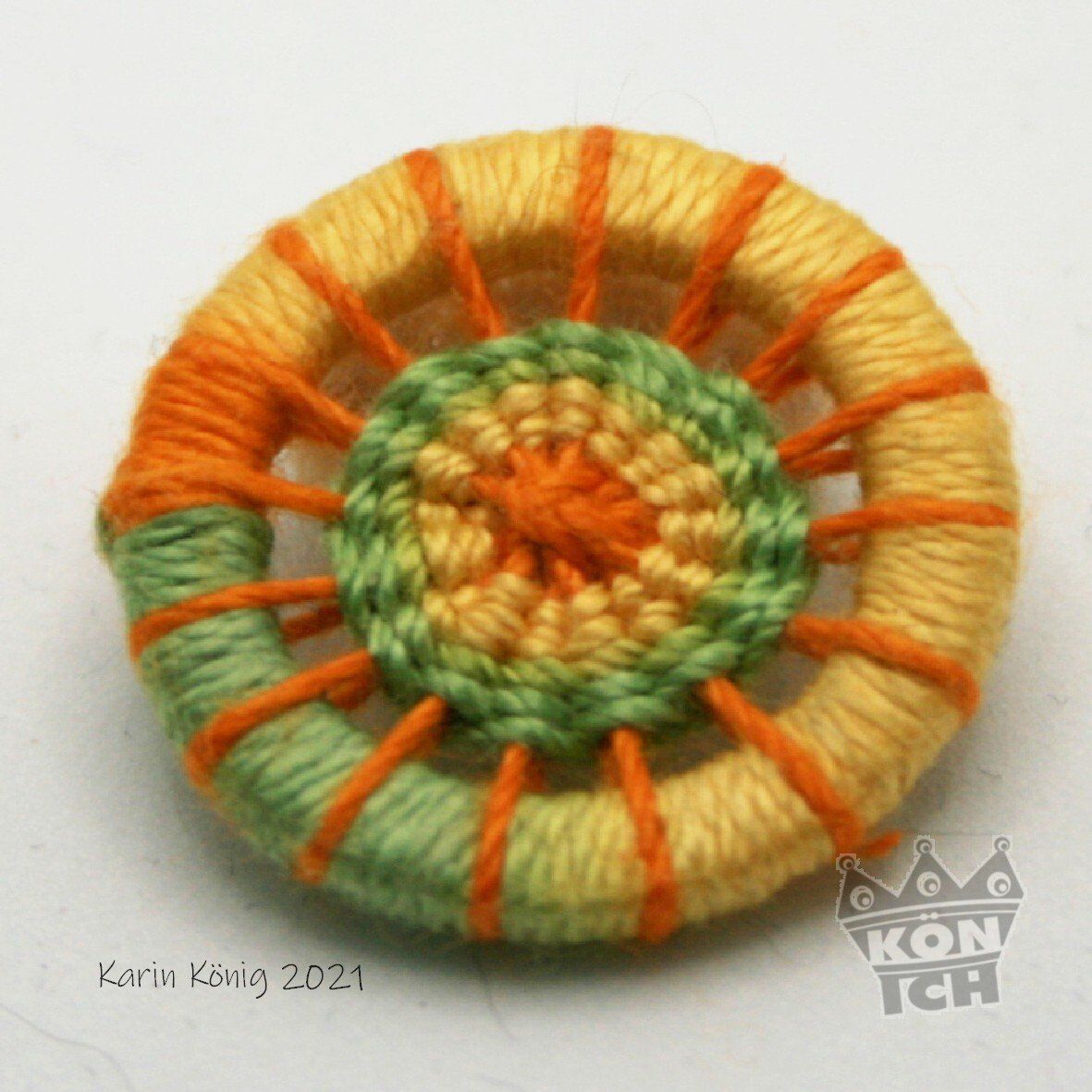 Auch ich habe mich mit dem Knopfvirus infiziert und habe große Freude daran gefunden, aus einer kleinen Holzscheibe oder einem Aluringlein und Faden kleine bunte Kunstwerke entstehen zu lassen...