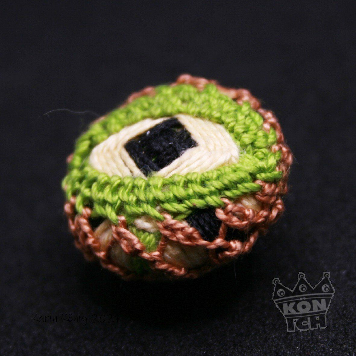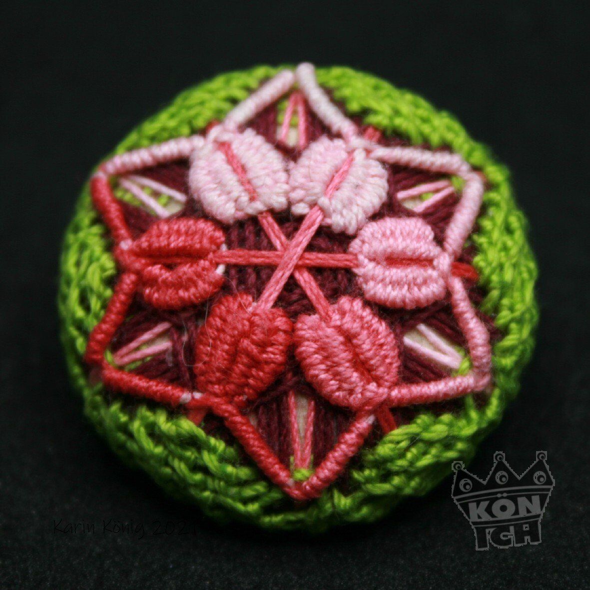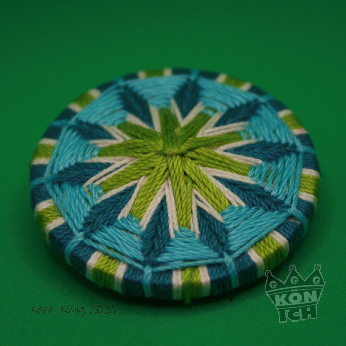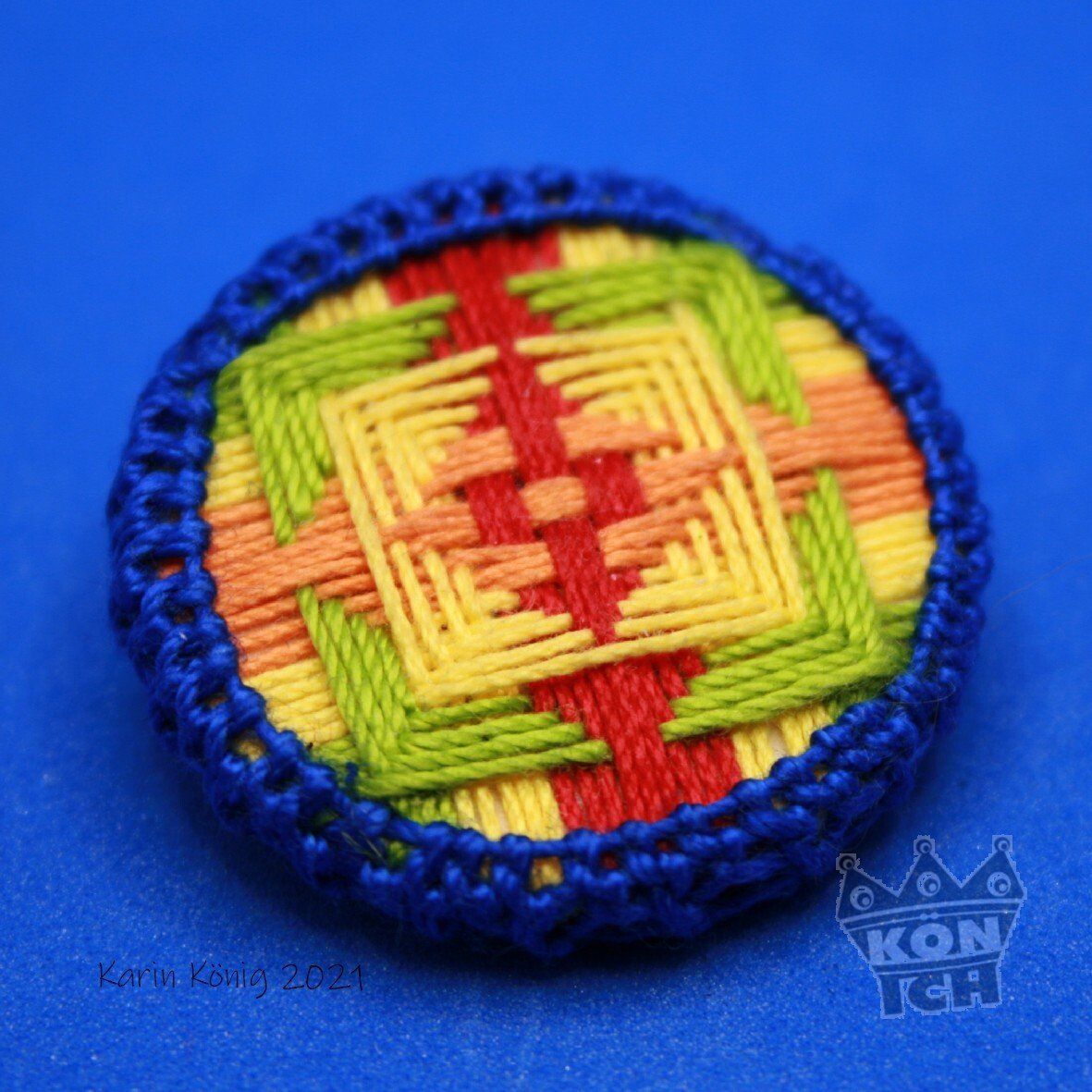 Auch ich habe mich mit dem Knopfvirus infiziert und habe große Freude daran gefunden, aus einer kleinen Holzscheibe oder einem Aluringlein und Faden kleine bunte Kunstwerke entstehen zu lassen...